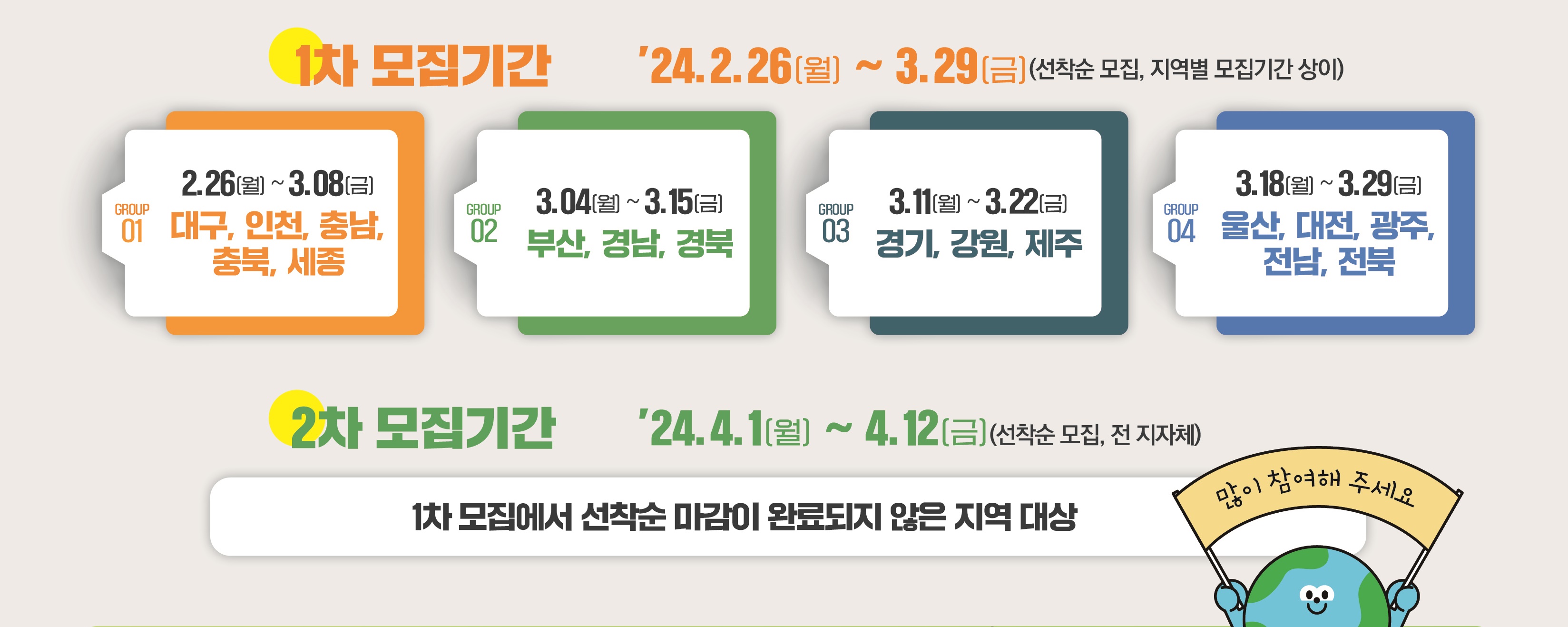 지역에 따라 신청기간이 다르니, 아래 신청기간을 잘 확인하셔서 신청하시기 바랍니다.